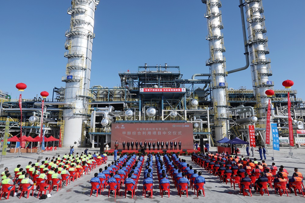 10月20日,碳鑫科技公司舉行甲醇綜合利用項目中交儀式,由施工建設階段全面轉入生產準備階段。(王明明 攝)